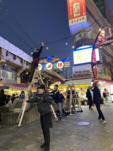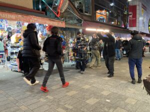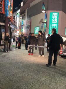 台東区フィルム・コミッションでは、ロケ地であるアメ横連合会の皆様のご協力の元、アメ横センタービルや上野中通り商店街と長期間かけて丁寧に調整を行い、ケンタロウ(渡部蓮)と元恋人メイ(キアシ―・クレモンズ)との会話シーンを支援しました。